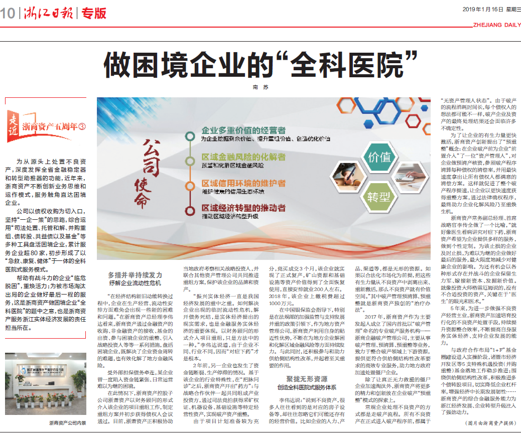 【浙(zhe)江日(ri)報】走近(jin)浙(zhe)商資產五周年系(xi)列三(san):做(zuo)困(kun)境企業的“全科醫院”